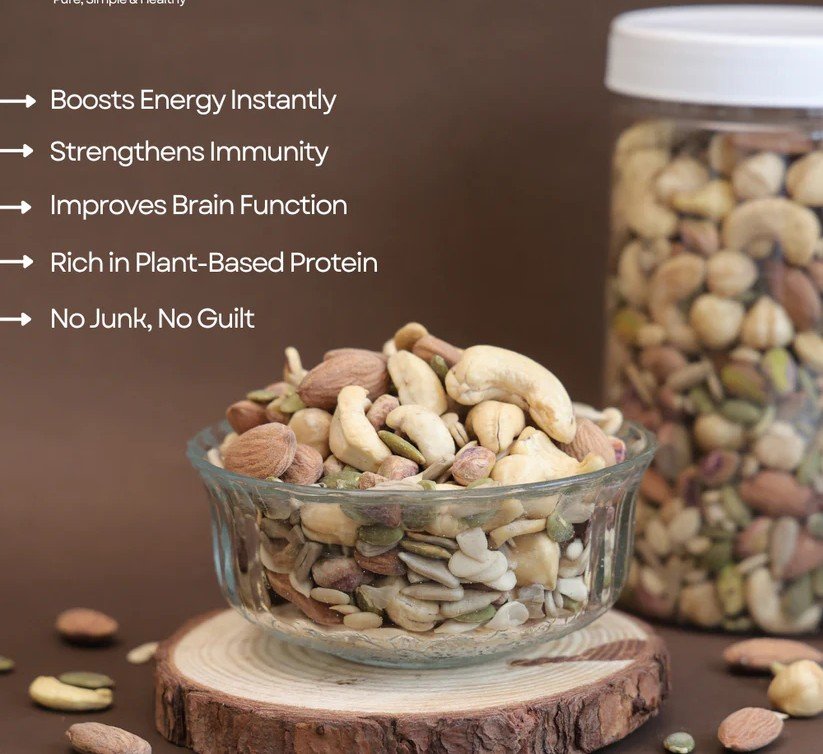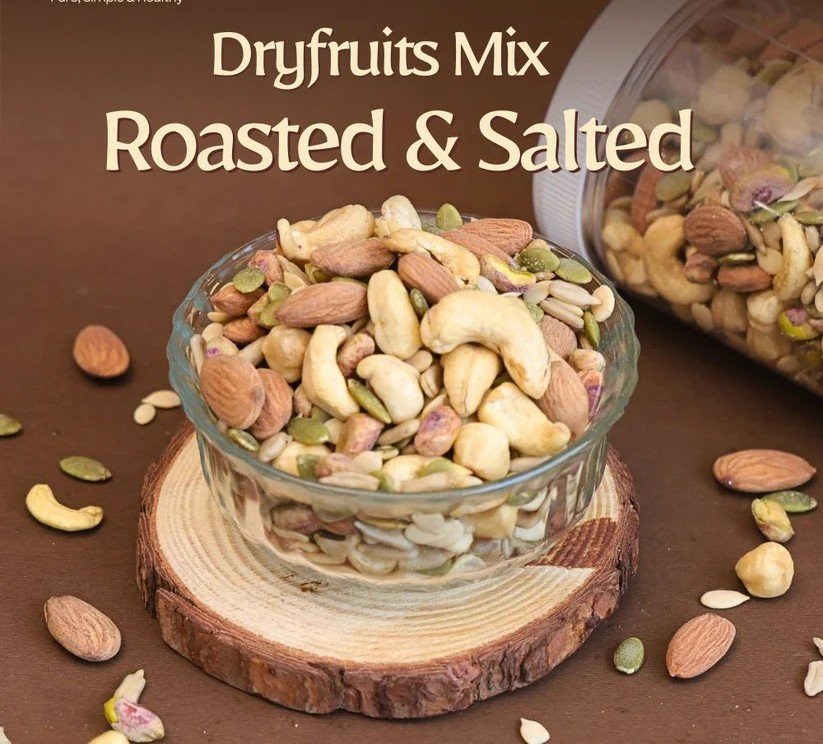 introducing Royal treast, roasted & salted dry fruit mix- a power-packed, flavor-rich snack crafted with a perfect blend of premium dry fruits and seeds, seasoned with Himalayan Sindhav Salt and Kala Namak for a uniquely desi twist.